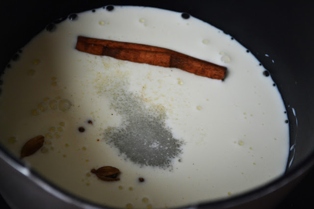 1. Faire bouillir la crème, la cannelle, les gousses de cardamome écrasées et le sucre