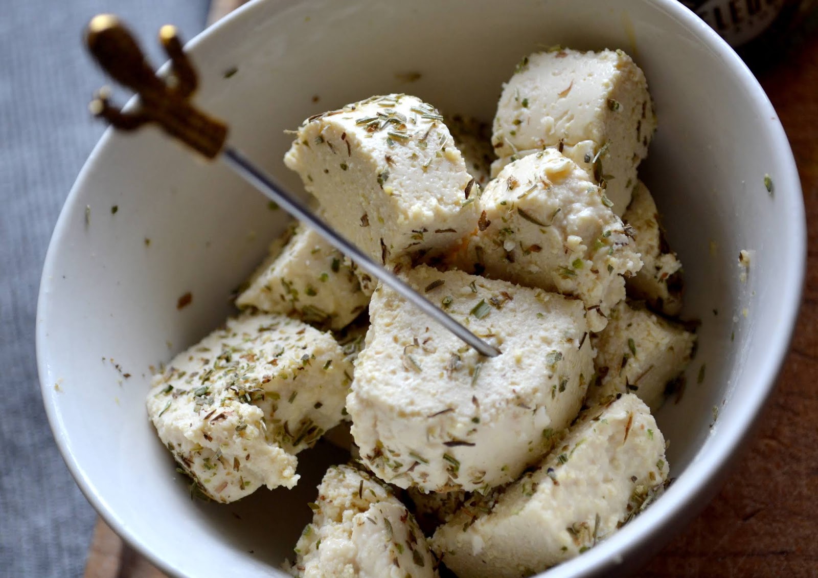 Soupe de patates douces à la feta végétale et à l'huile de cerfeuil